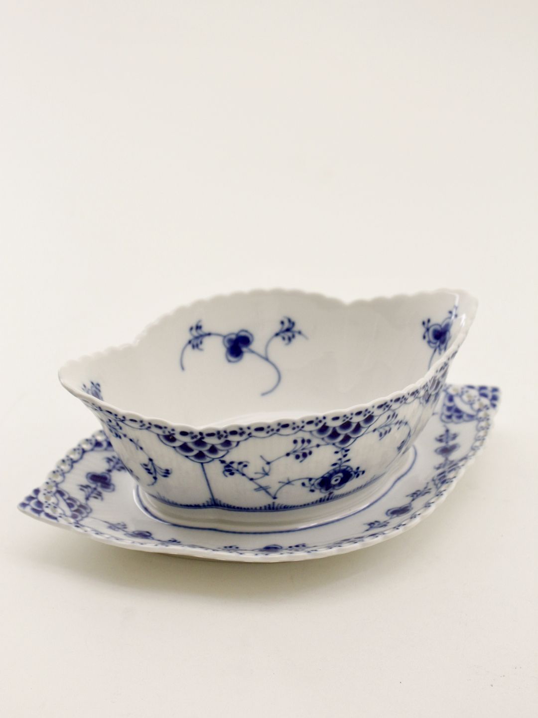 Royal Copenhagen blue fluted full lace sauce dish 1/1105 with firm foot 1.sort. No. 328038
