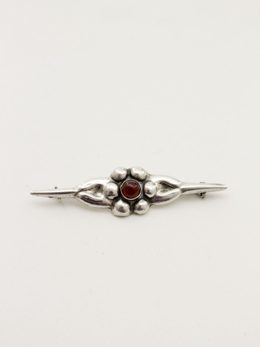 Art Nouveau Brooch L. 7.7 cm. with coral stamped 830s SF for S.Chr. Fogh Copenhagen No. 329951
