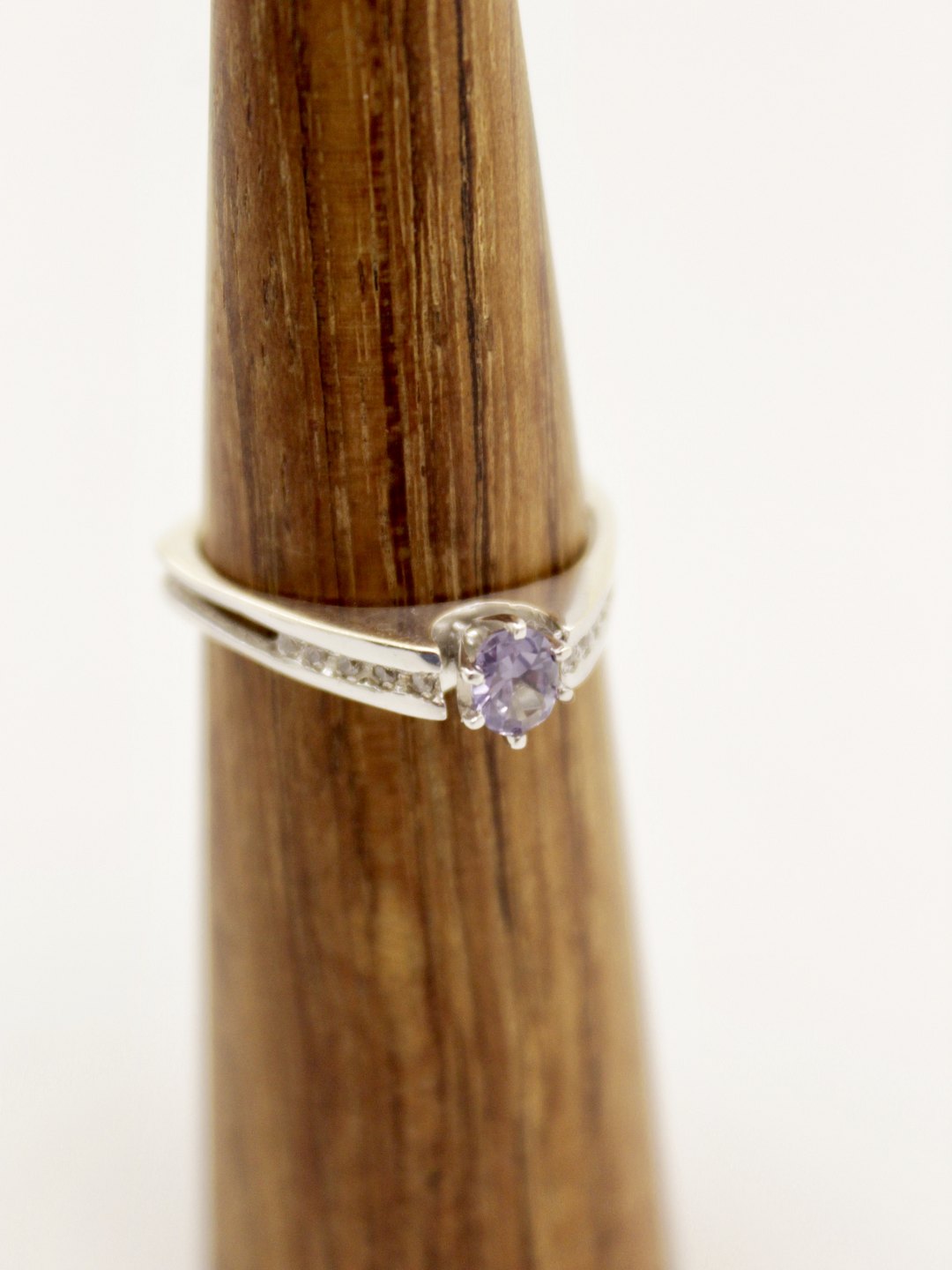 14 karat hvid guldring størrelse 59 med aquamarin og små diamanter Nr. 330109