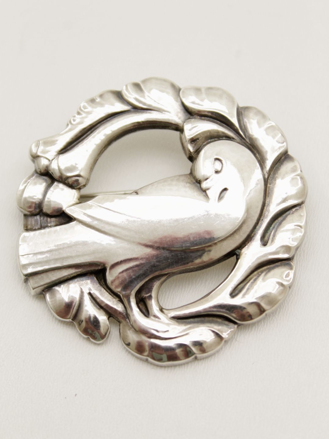 Georg Jensen sterling sølv broche med due 123 D. 4,5 cm.