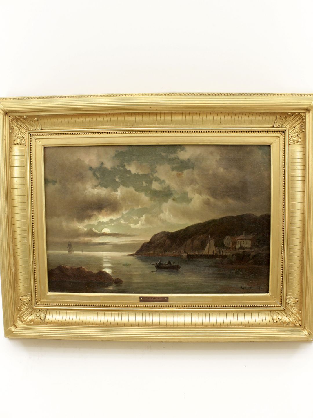 Prof. Carl Bille maleri 51 x 67 cm. kysten ved Frederikssund Norge år 1878 Nr. 333968