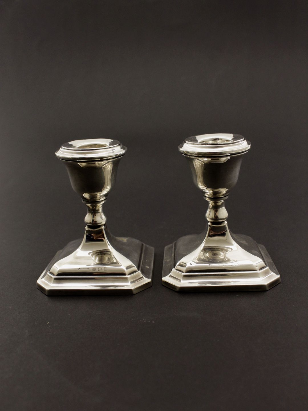 Engelske sterling sølv lysestager på firkantet fod H. 8,5 cm.