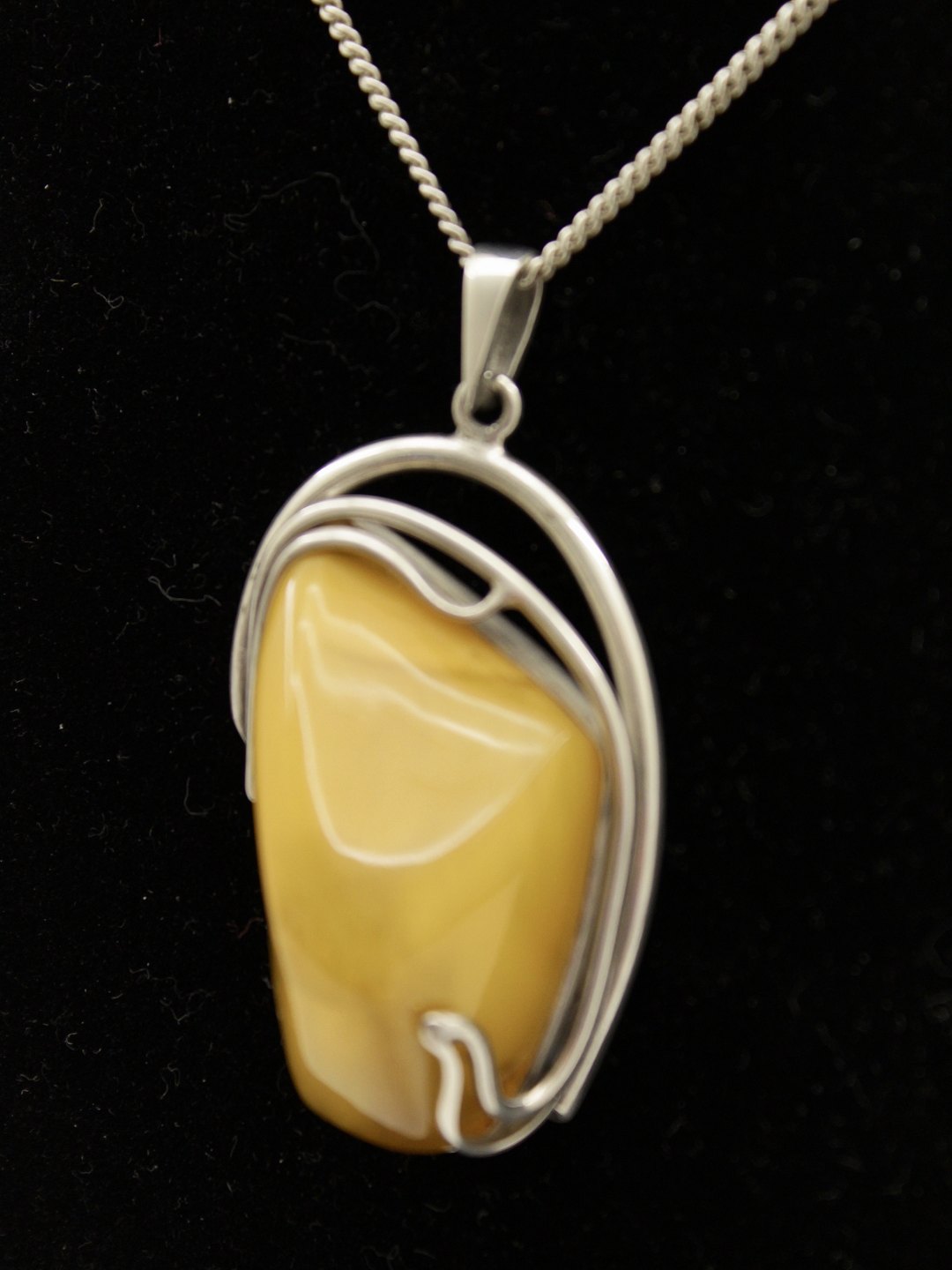 Silver chain 54 cm. with amber in silver mounting 5 x 3 cm. No. 337728