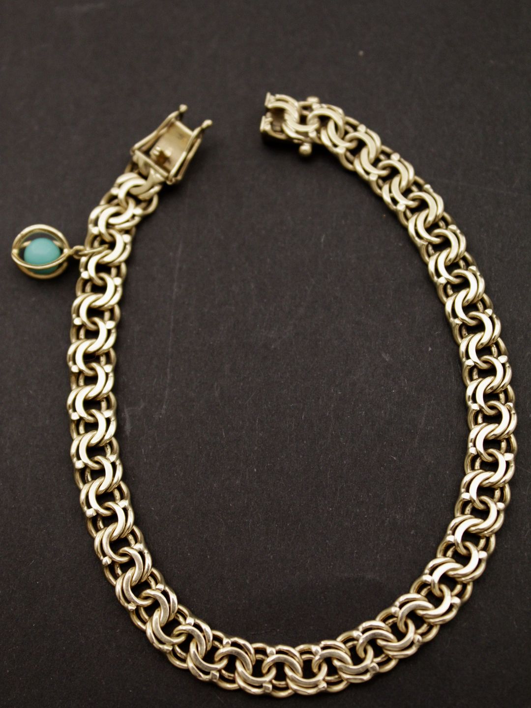 B Hertz 14 karat bismarck armband L. 19 cm. B. 0.7 cm. weight 15.7 gr. with pendant no. 339533