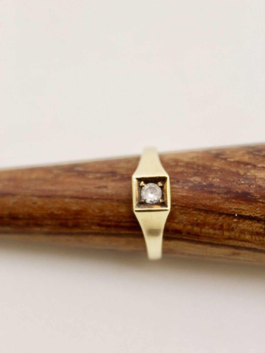 14ct gold ring with clear zircon stamped 585 HJ for goldsmith Hans Jensen Aarhus size 54 Nr. 205567