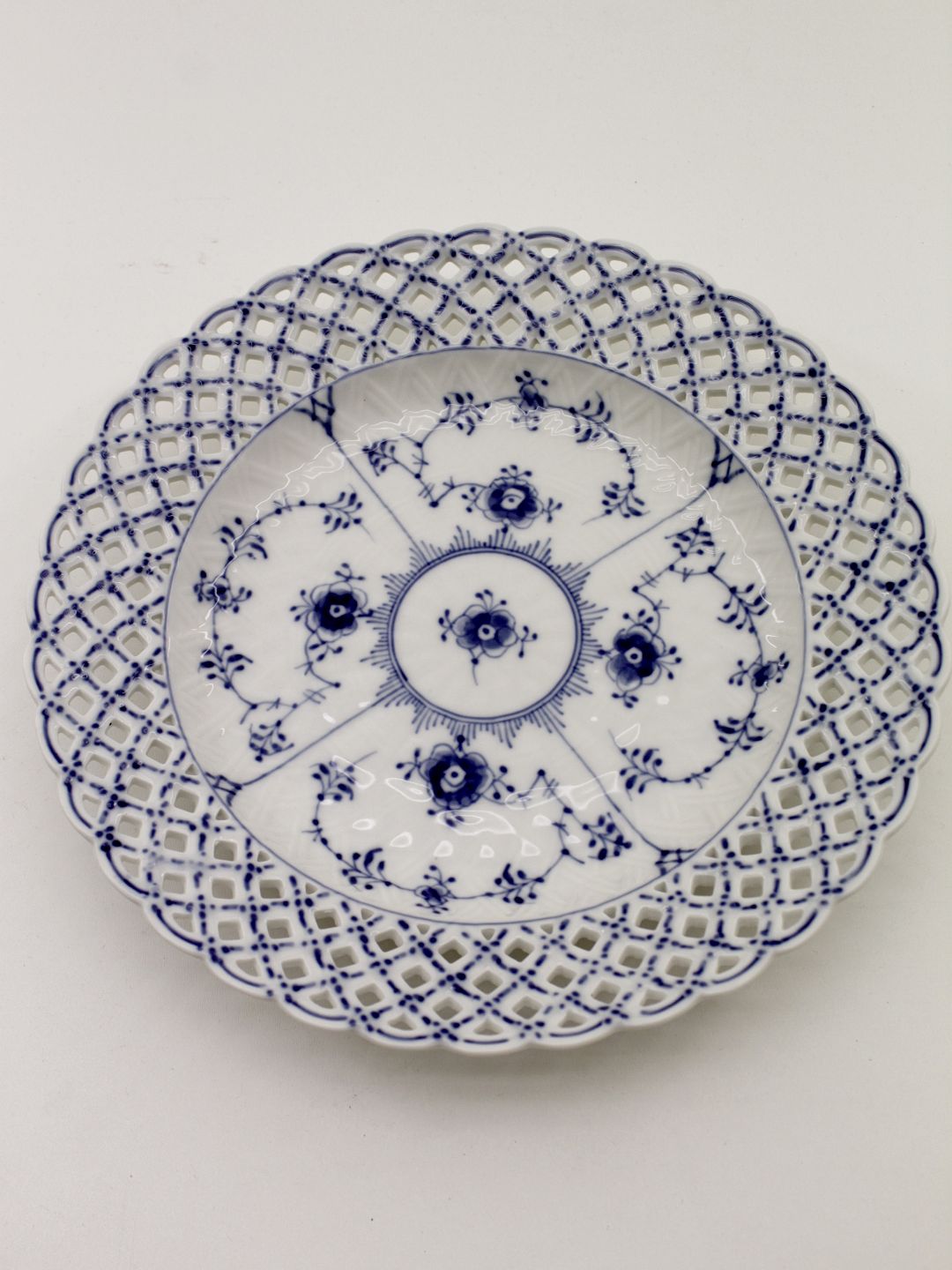 Royal Copenhagen musselmalet hel blonde flad tallerken med gennembrudt kant 1/1098 D. 25,5 cm. 1.sort. Nr. 343433