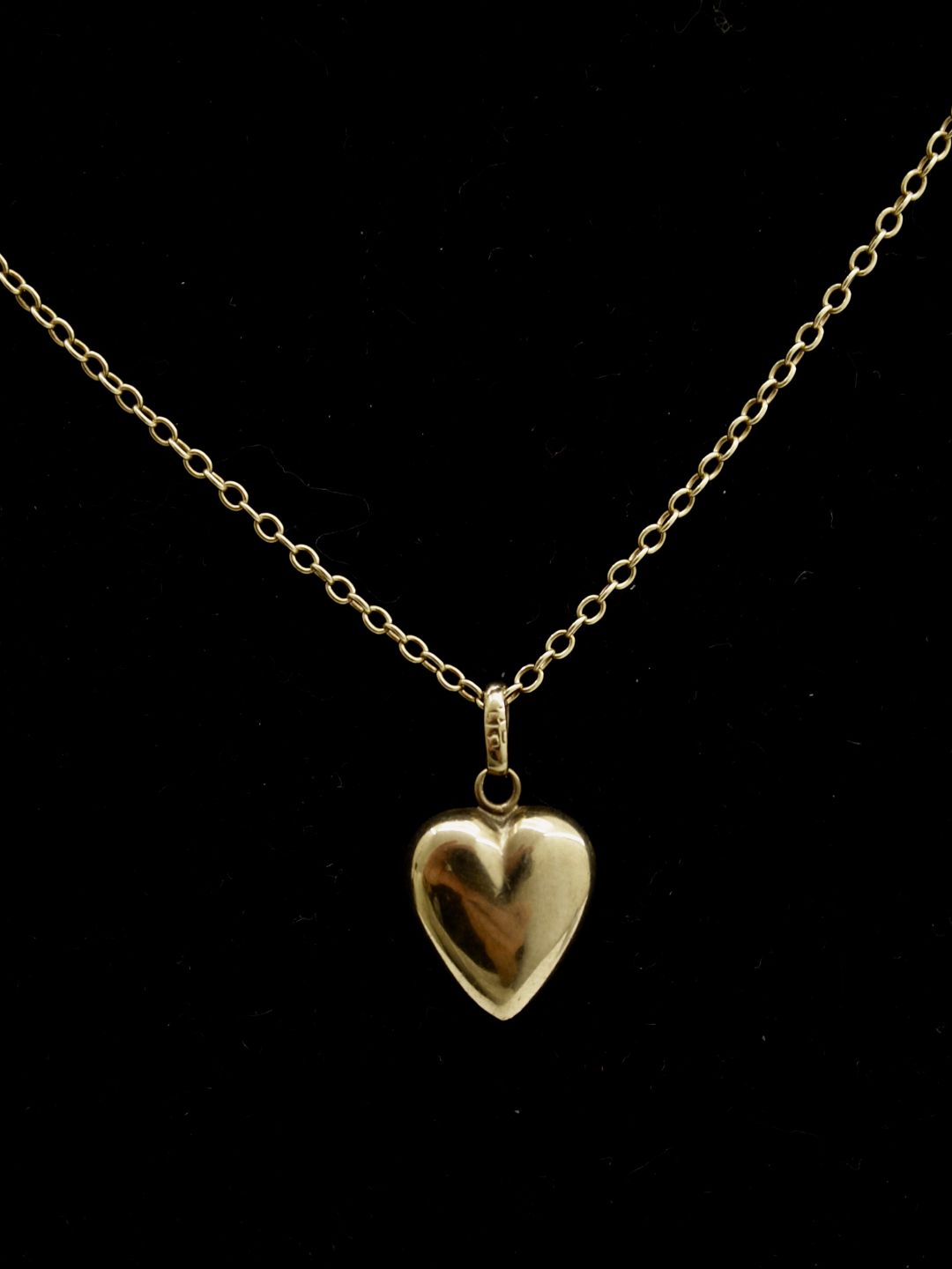 14 karat guld halskæde 46 cm. og hjerte 1,1 x 1,5 cm.