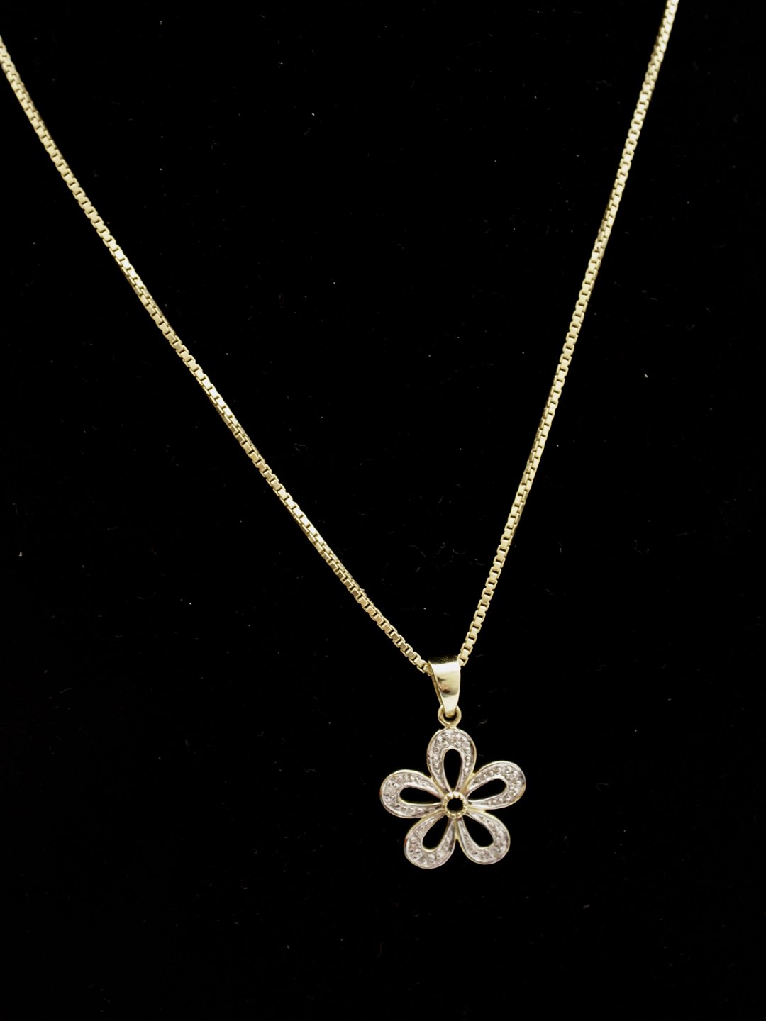 14ct carat necklace 46 cm. with star pendant D. 1.8 cm. with numerous small diamonds stamped BEE for jewels Bent Eriksson Copenhagen Nr. 351560