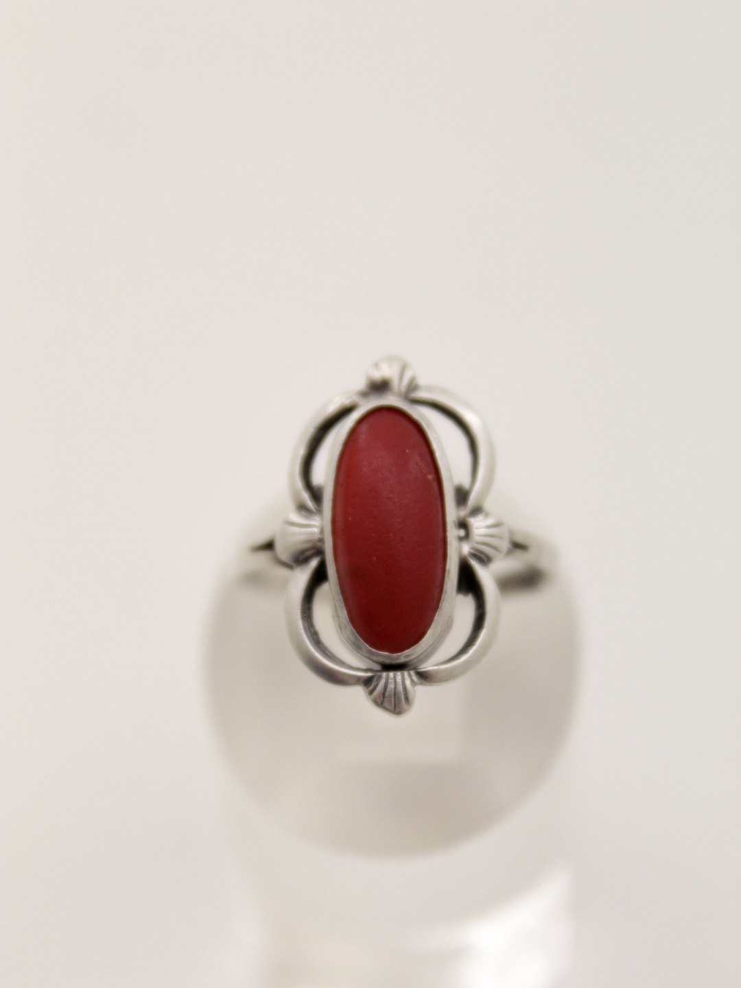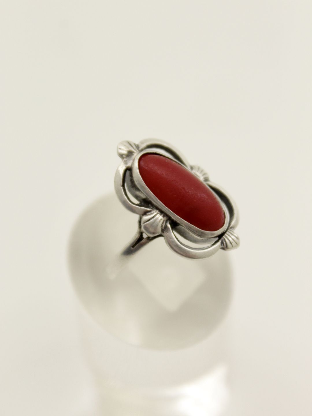 F Hingelberg 830 silver ring size 55-56 with coral no. 353128