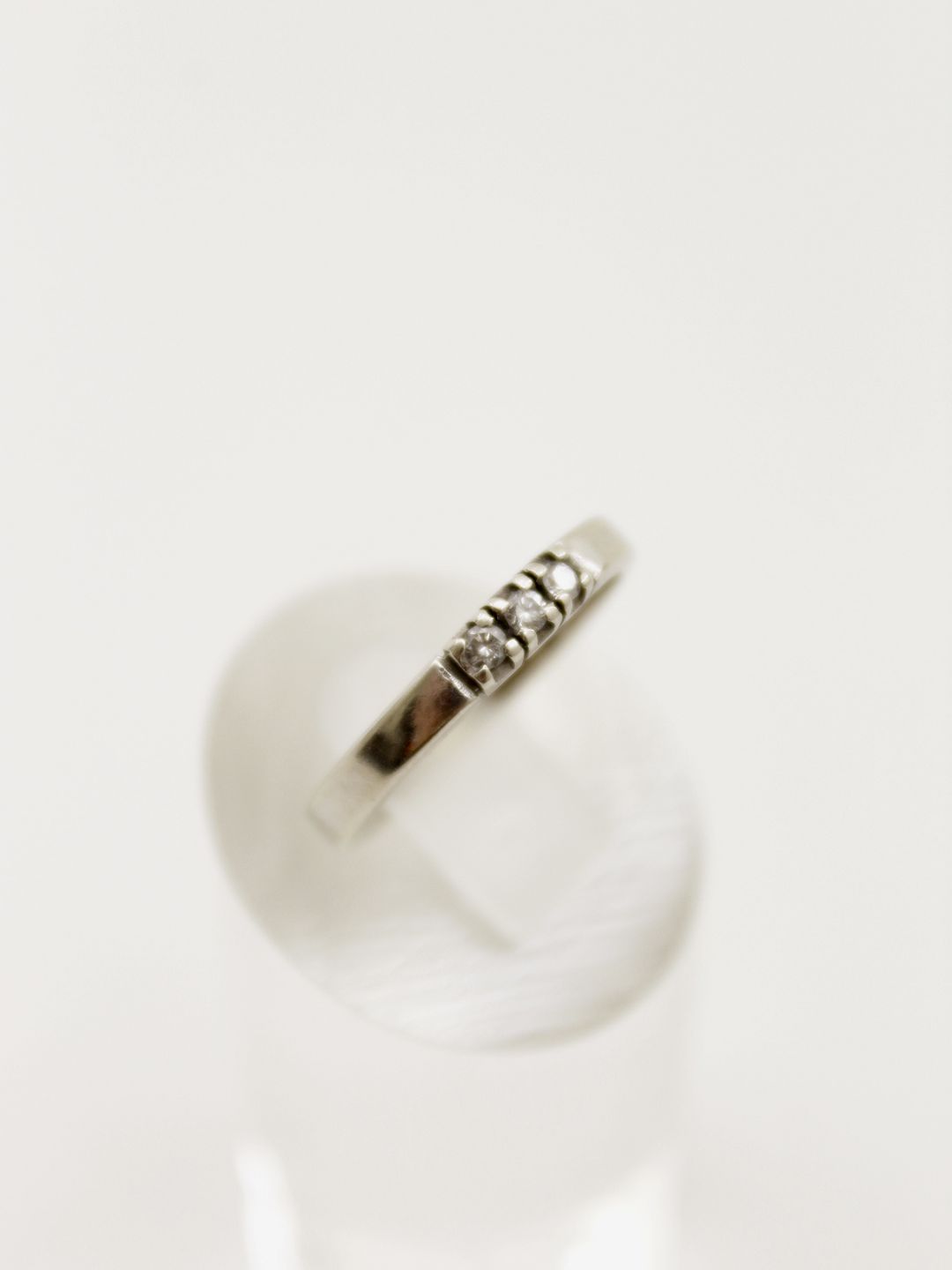 14 karat hvid guld ring størrelse 54 med 3 diamanter stemplet 585 HU for guldsmed H Ulriksen Herning Nr. 354895