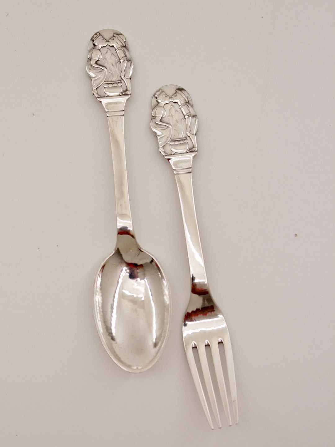 Evald Nielsen 830s children's cutlery 17 cm. H C Andersen "Svinedrengen" Nr. 370123