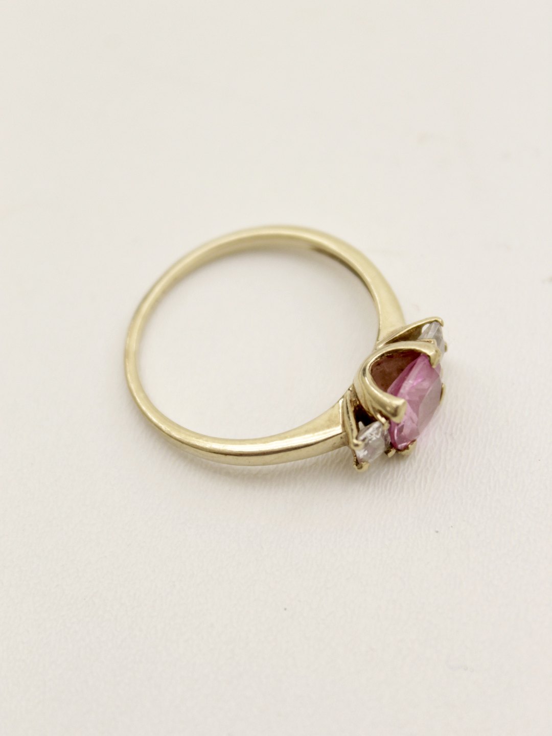8 carat gold ring size 58 Ø 1.85 cm. with large pink and 2 clear stones Nr. 374578