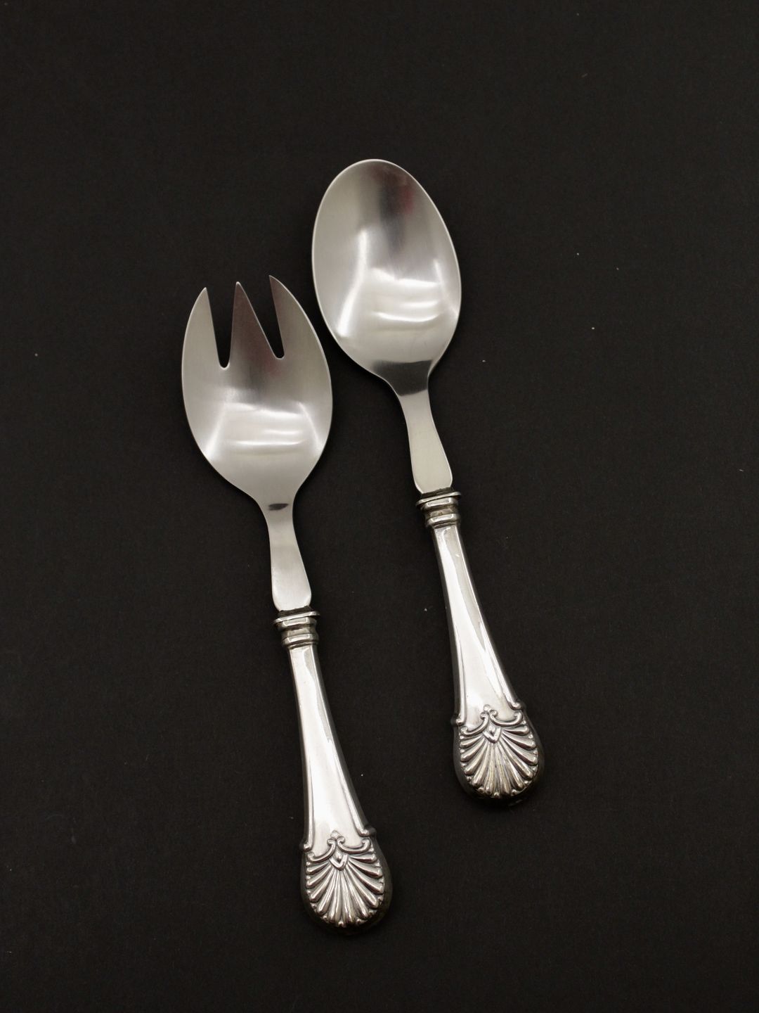 Palmet salat sæt 17,5 cm. sølv og stål.solgt