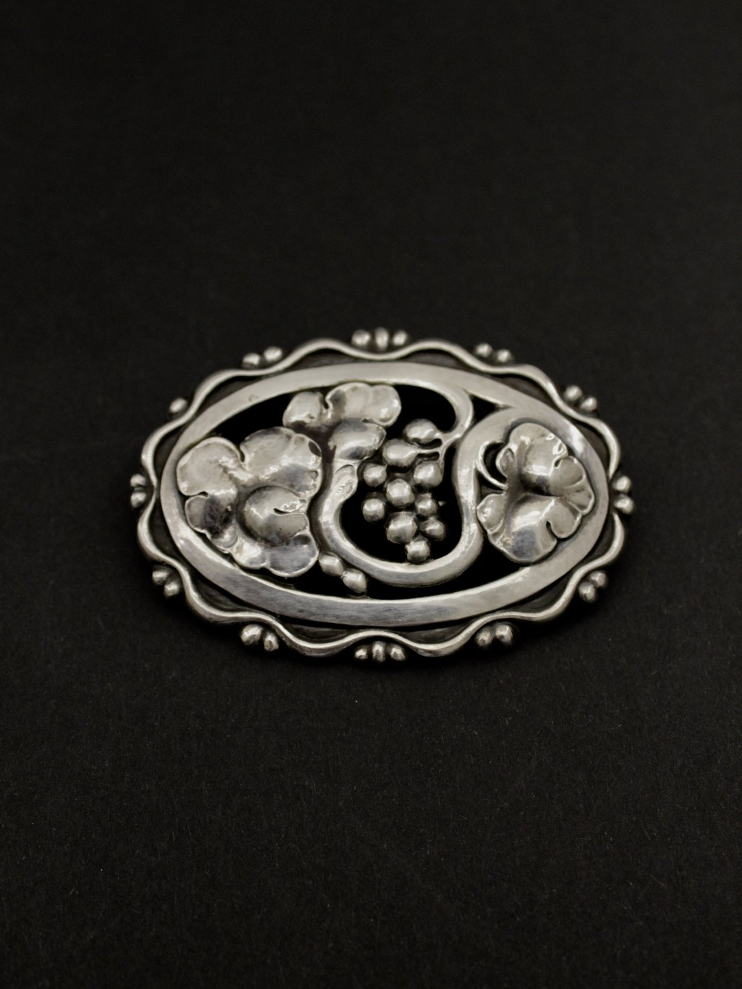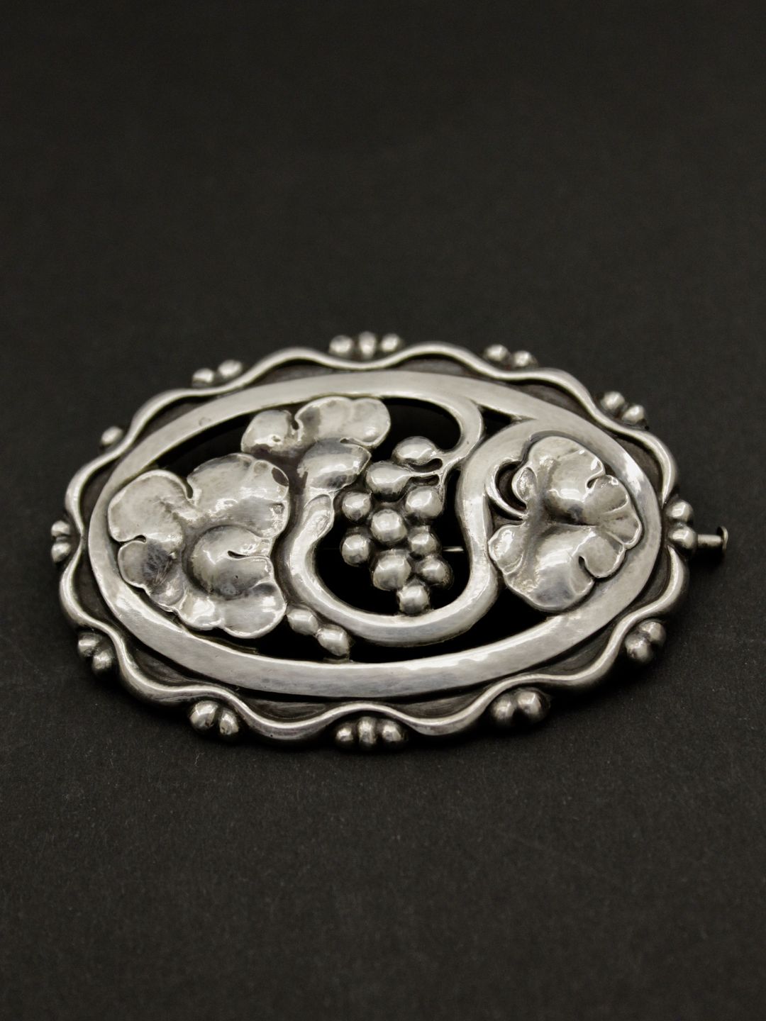 Georg Jensen sterling sølv art nouveau broche 177 A 6 x 4,2 cm. med druemotiv stempel 1933-44. Nr. 382042