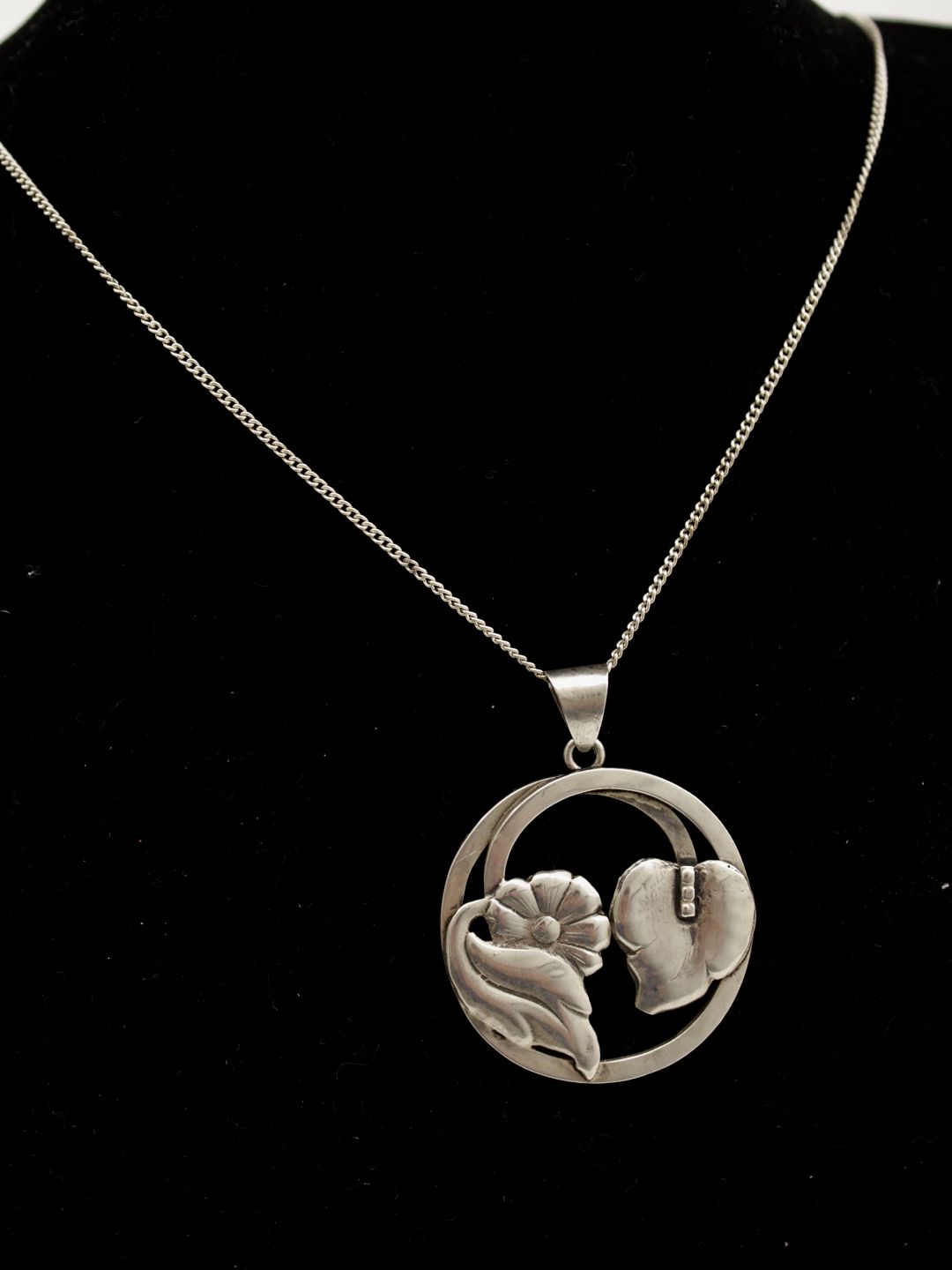 830 sølv halskæde 60 cm. og art deco vedhæng dia. 3,4 cm.