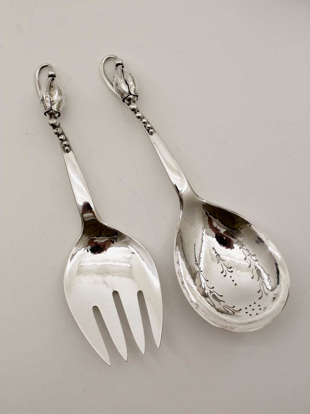 Georg Jensen sterling (925s) Blossom salad set dess. 84 21.5 cm. No. 385453