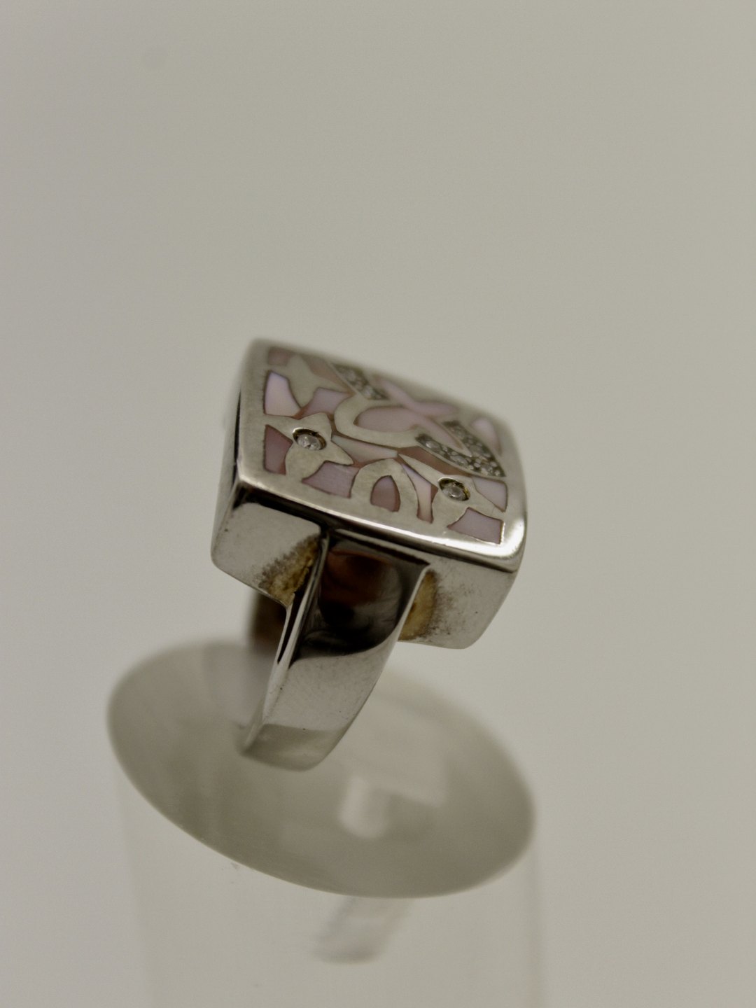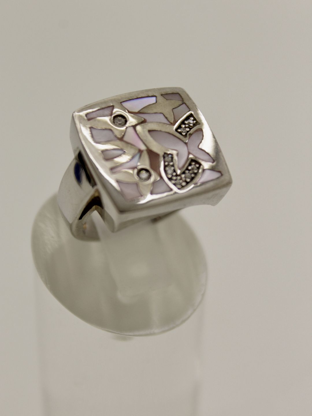 Sterling silver ring size 52 with mother of pearl and small diamonds. No. 386407