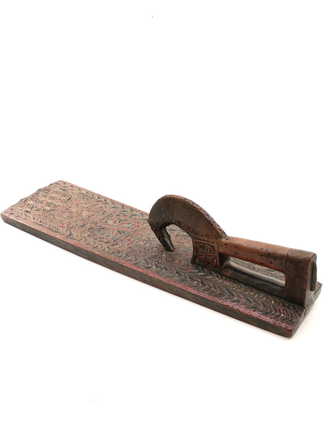 Mangle board from Ærø with carved cut rosettes initials and dated 1810 original paint. 62 cm. No. 399112
