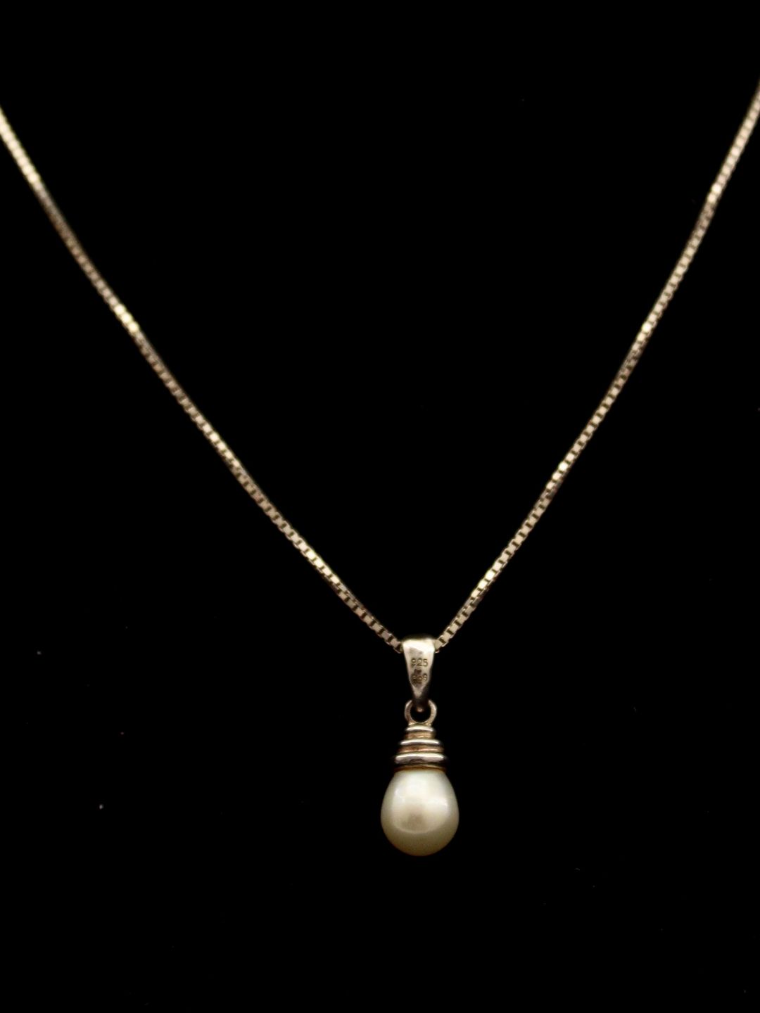 Sterling sølv halskæde 45 cm. og perle vedhæng 0,8 x 1,5 cm. fra Guld og Sølv Design Horsens Nr. 403944
