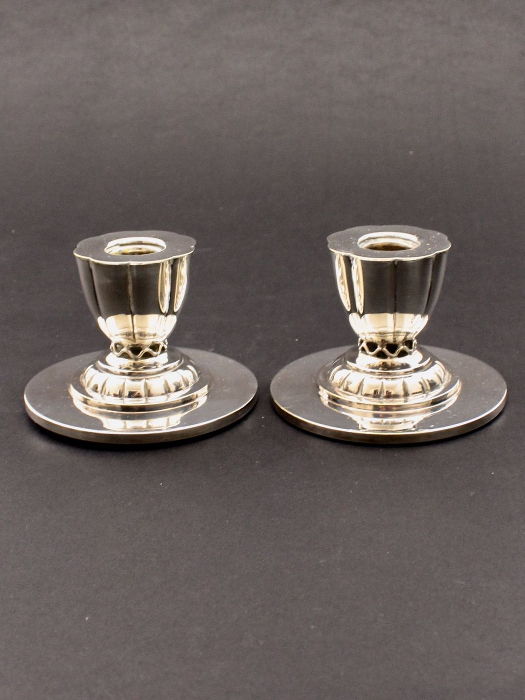 A pair of silvered candlesticks with pierced stem height 7 cm. No. 405895