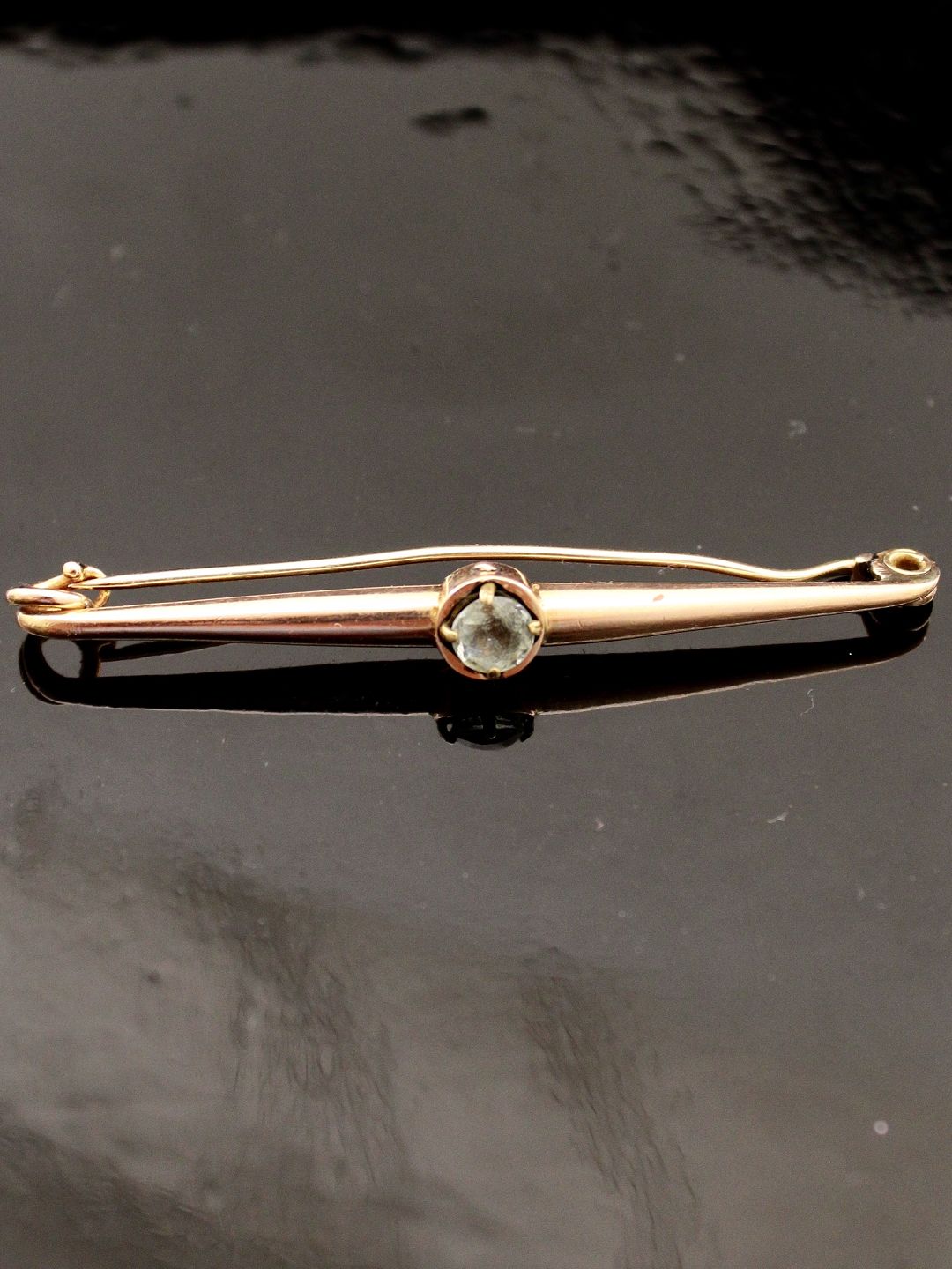 8 karat guld slipse nål L. 5,6 cm. med blå sten Nr. 413900