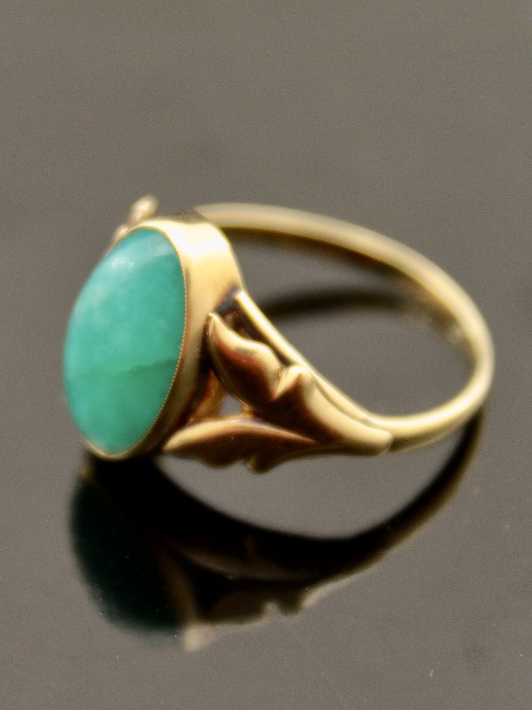 14 carat gold ring size 53 with green aventurine from goldsmith G Åkerlund Aarhus. No. 414267