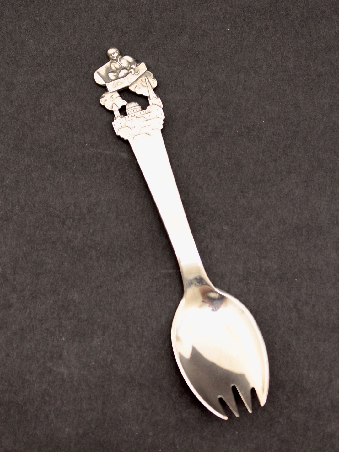 H C Andersen children's spoon / fork "The Flying Suitcase" silver no. 414455