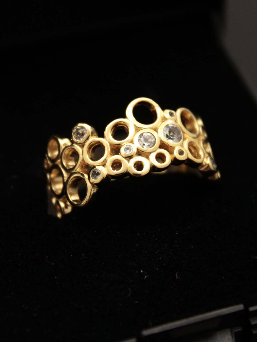 Gold-plated Sterling ring size 61 with zircons stamped CDL 925. Nr. 418396