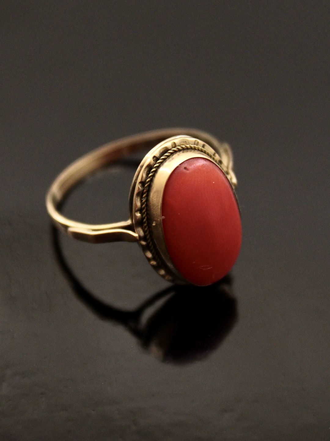 8 carat gold ring size 57 with coral 1 x 1.6 cm. No. 419152