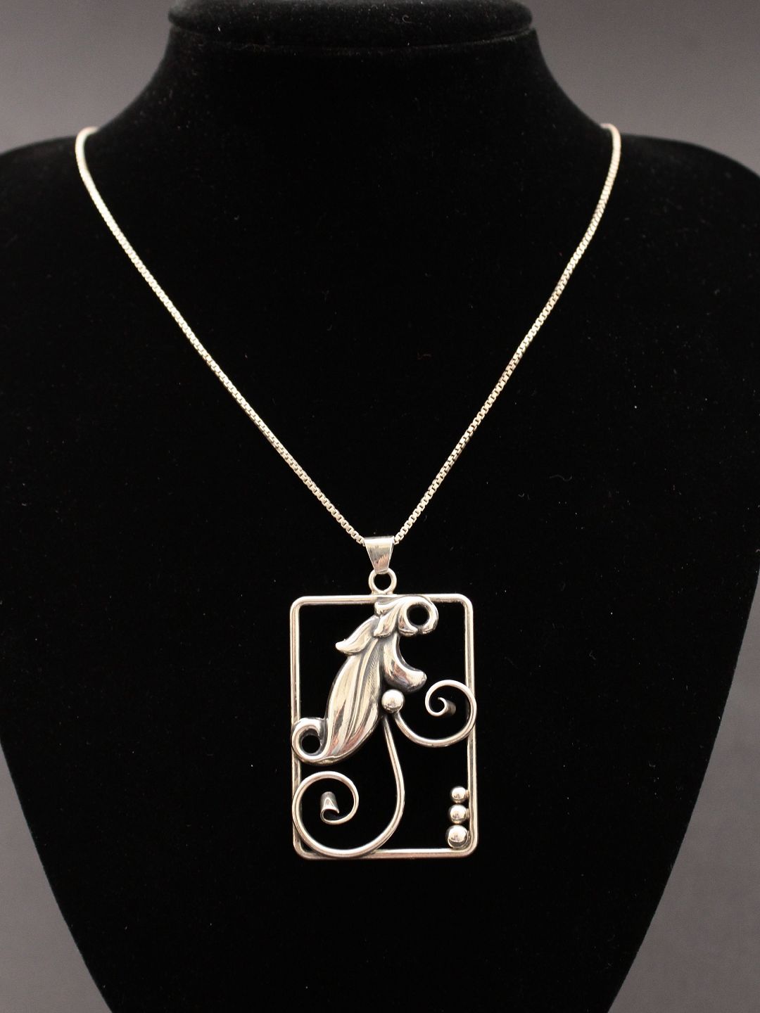 Sterling silver necklace 48 cm. with 830 silver art deco pendant 3.2 x 5 cm. No. 420705
