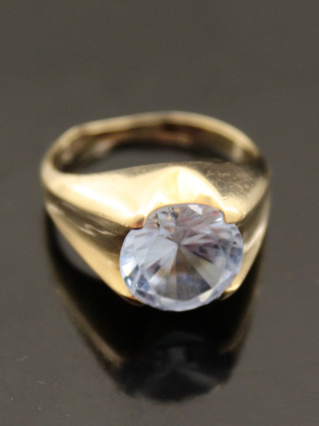 14 karat guldring størrelse 55 med aquamarin fra guldsmed Herman Siersbøl København. Nr. 423487