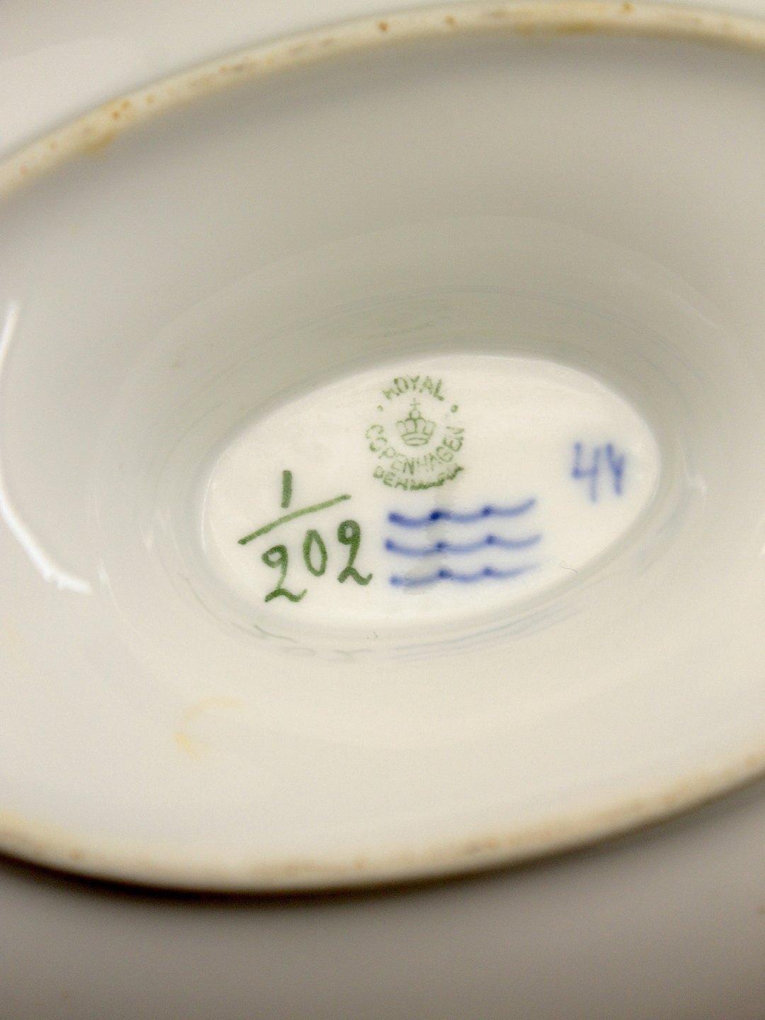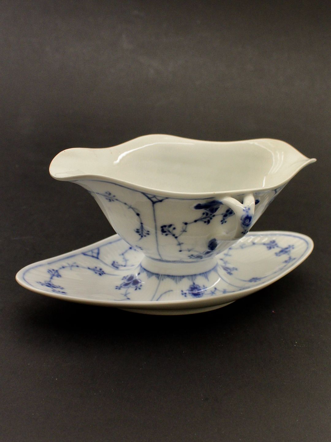 Royal Copenhagen musselmalet sovseskål 1/202 på fast fod 2.sort. Nr. 427849