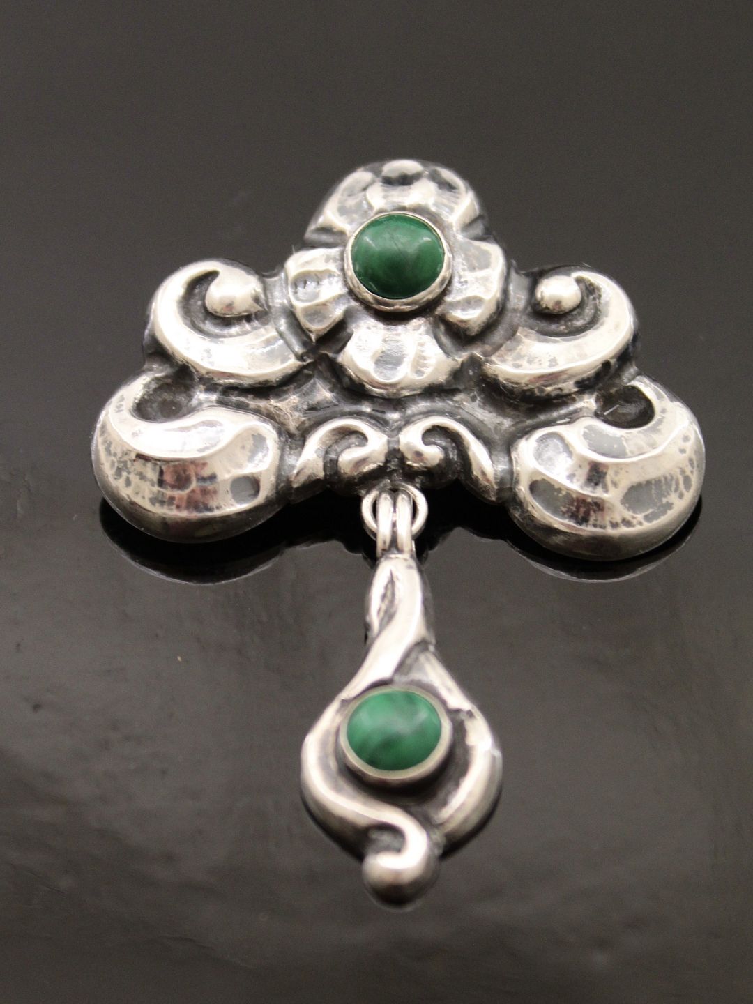 Art nouveau / Art Nouveau silver brooch 4.4 x 6 cm. with green agates Nr. 430329