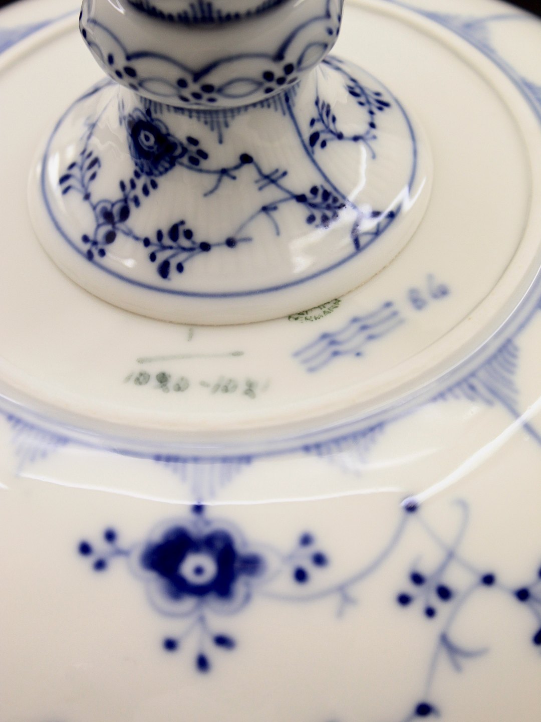 Royal Copenhagen musselmalet helblonde frugt / kage opsats 1/1020-1021 H. 14,5 cm. D.21 cm. 1.sort. Nr. 431134