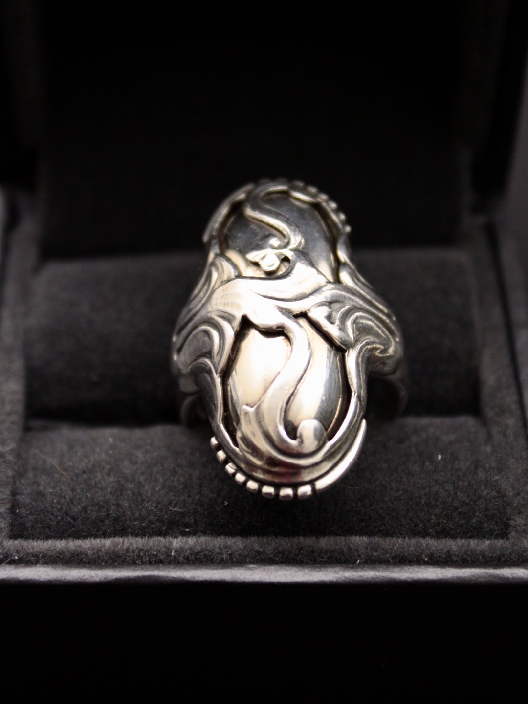 Georg Jensen sterling sølv ring størrelse 55 med sølvkugle #18 moonlight blossom original Geong Jensen box medfølger Nr. 431794