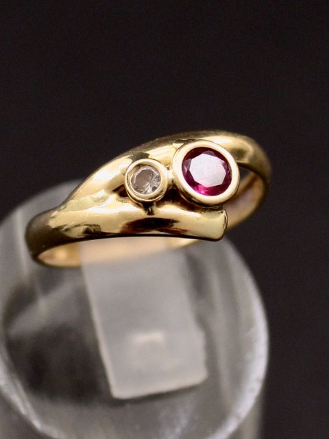 14 karat guld ring størrelse 56 med rubin og klar sten