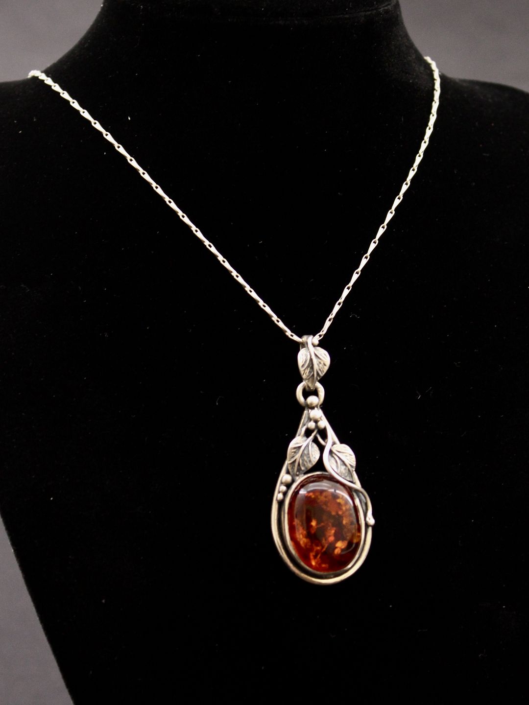 830 sølv halskæde 43.5 cm. og vedhæng 4,6 x 2,4 cm. med rav Nr. 445790