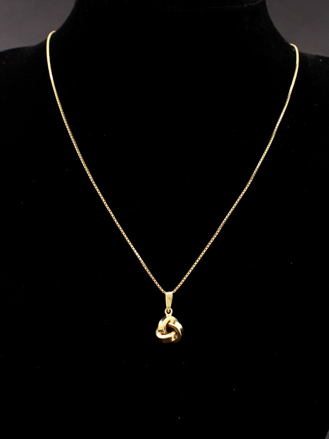 10 carat gold chain 49 cm. and 14 carat knot pendant D. 1 cm. Nr. 446455