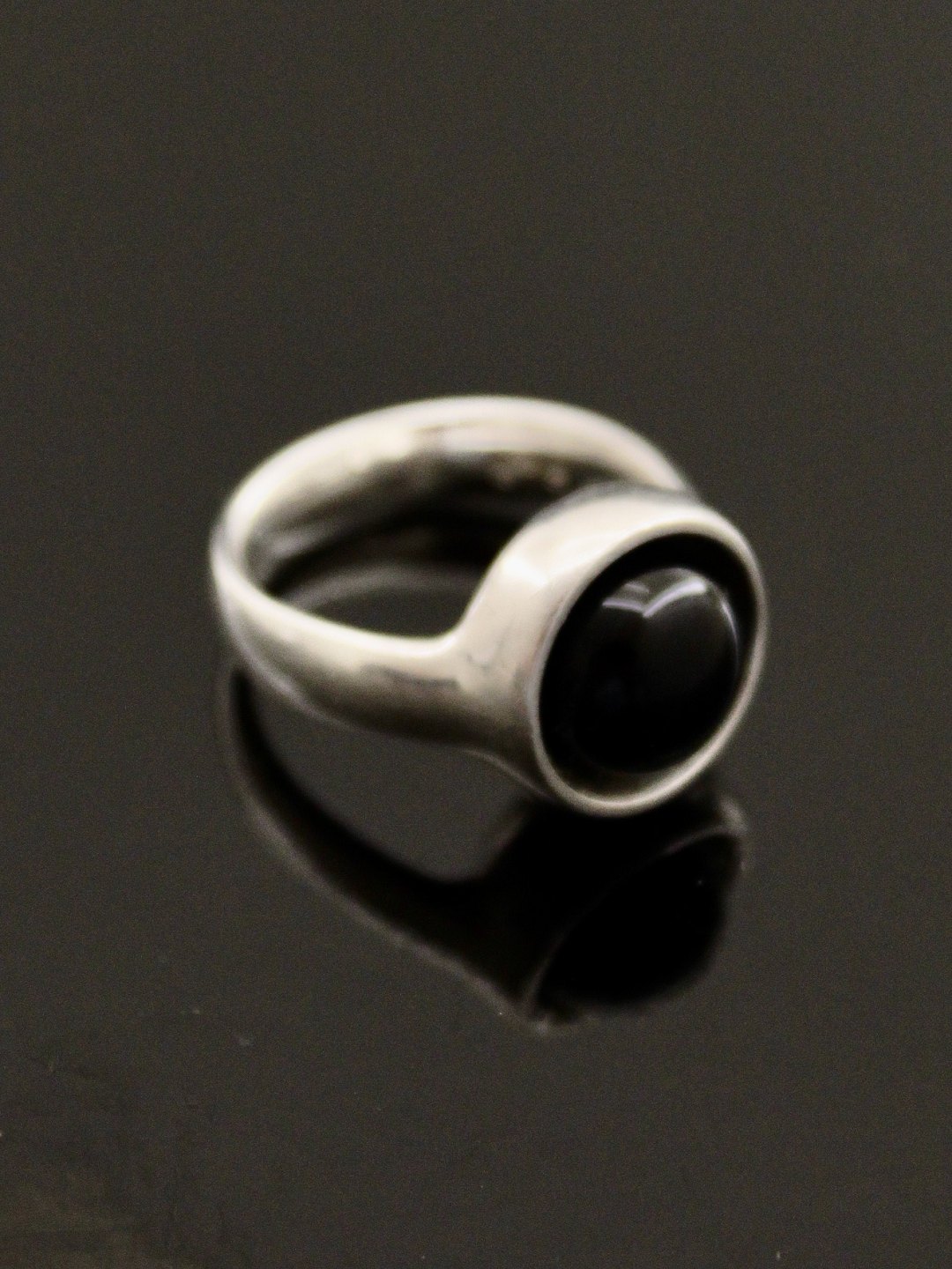 Regitze Overgaard for Georg Jensen sphere ring # 473 størrelse 52 sterling sølv prydet med sort agat Nr. 448503