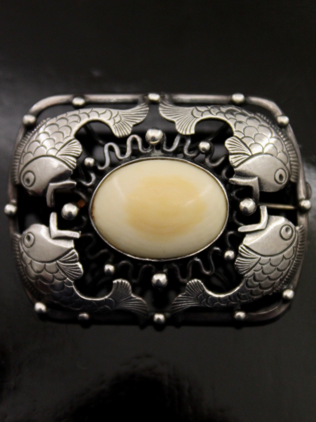 Art nouveau sterling sølv broche 4,5 x 3,3 cm. med cabochon sleben elfenben Nr. 449148