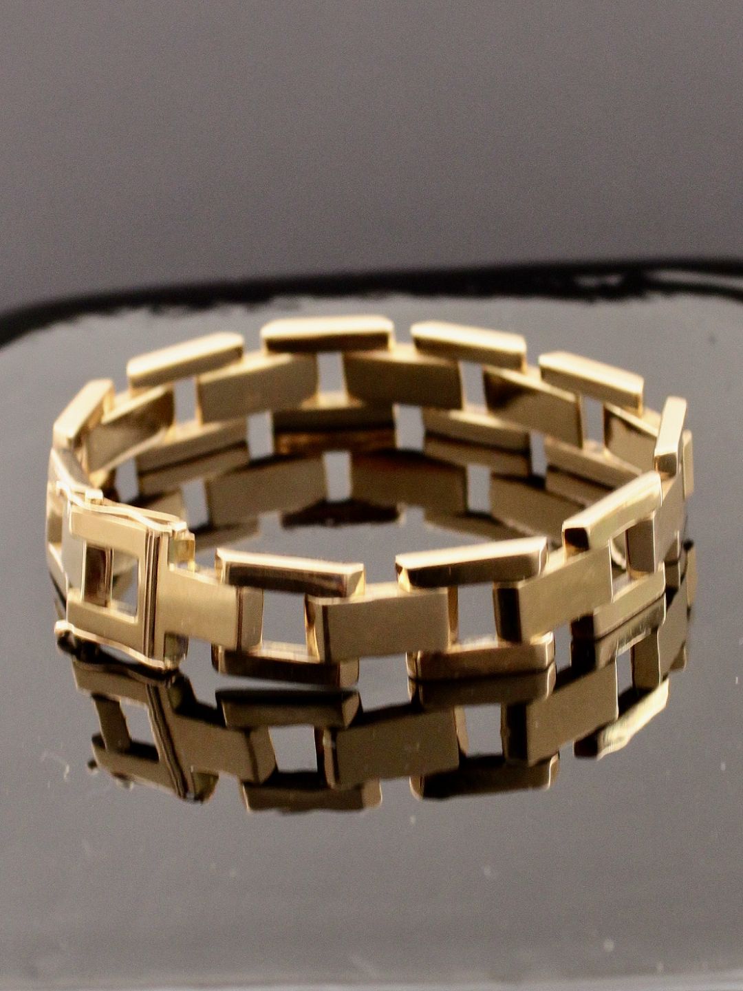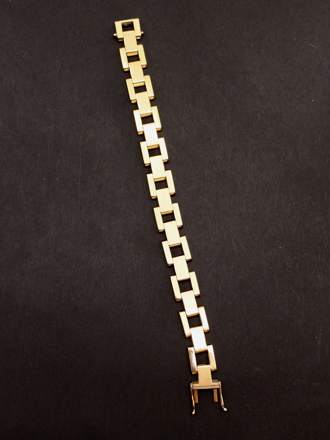 14 karat guld blok armlænke 19,5 cm. B. 1,3 cm. 28 gr. fra guldsmed Aage Albing København emne nr. 455872