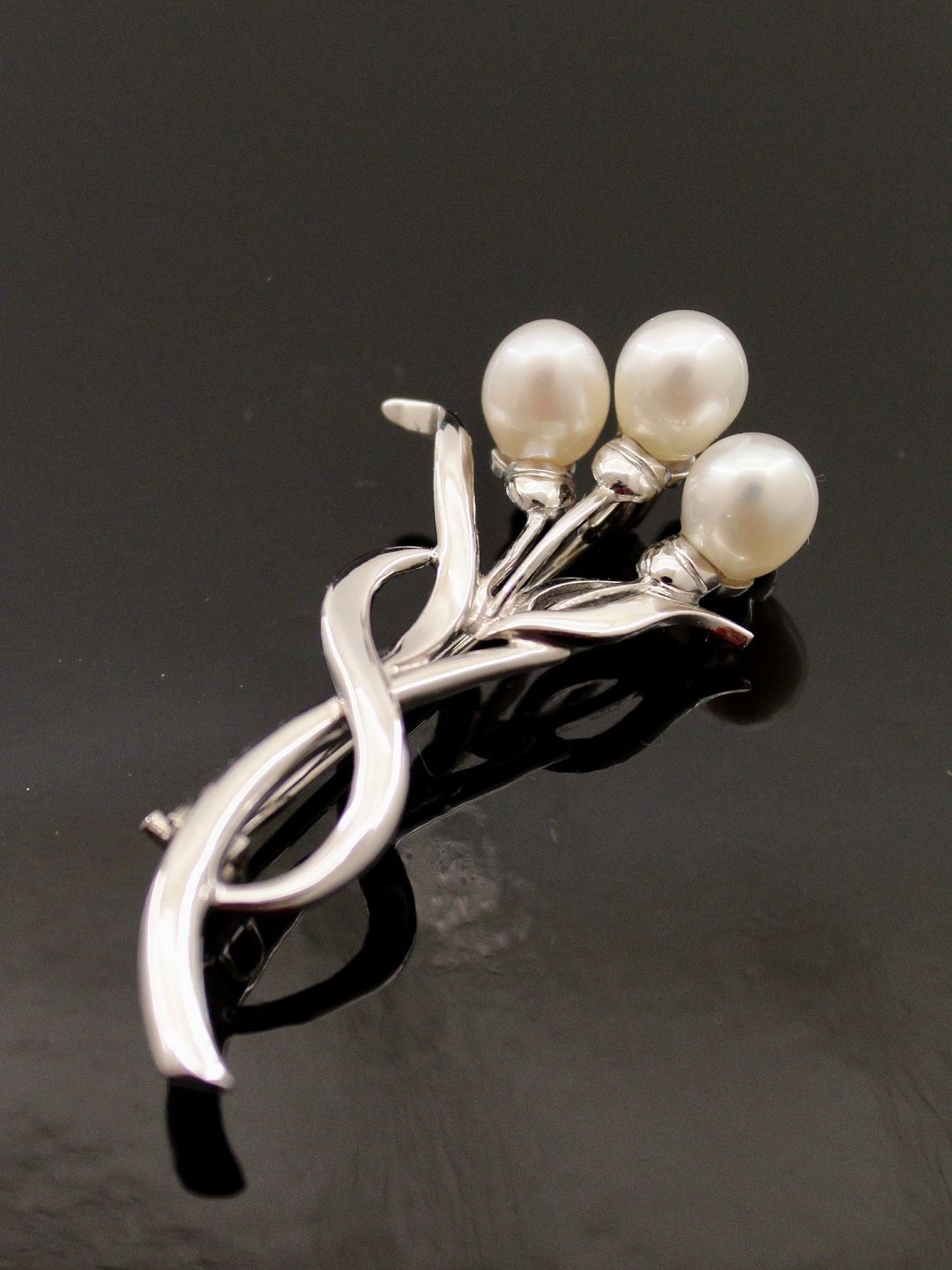 Sterling sølv broche L. 4,5 cm. med 3 ægte perler emne nr.