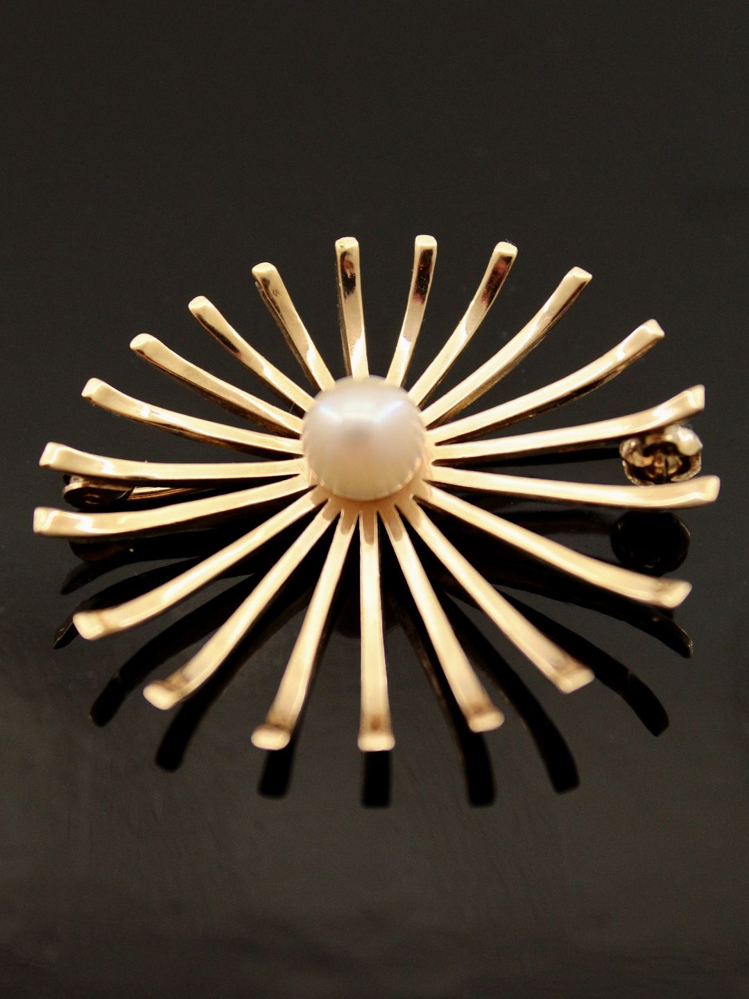 14 carat gold brooch 3.7 x 3.2 cm. with genuine pearl from jeweler B.Hertz Copenhagen item no. 463846