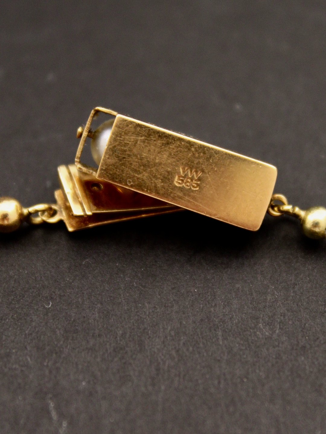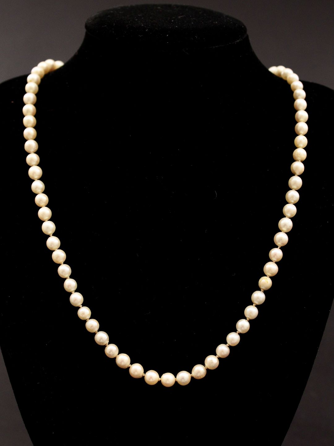 Pearl chain 49 cm with cultured pearls 0.55 cm. and 14 carat gold lock from jeweler Viggo Wollny Copenhagen item no. 464143