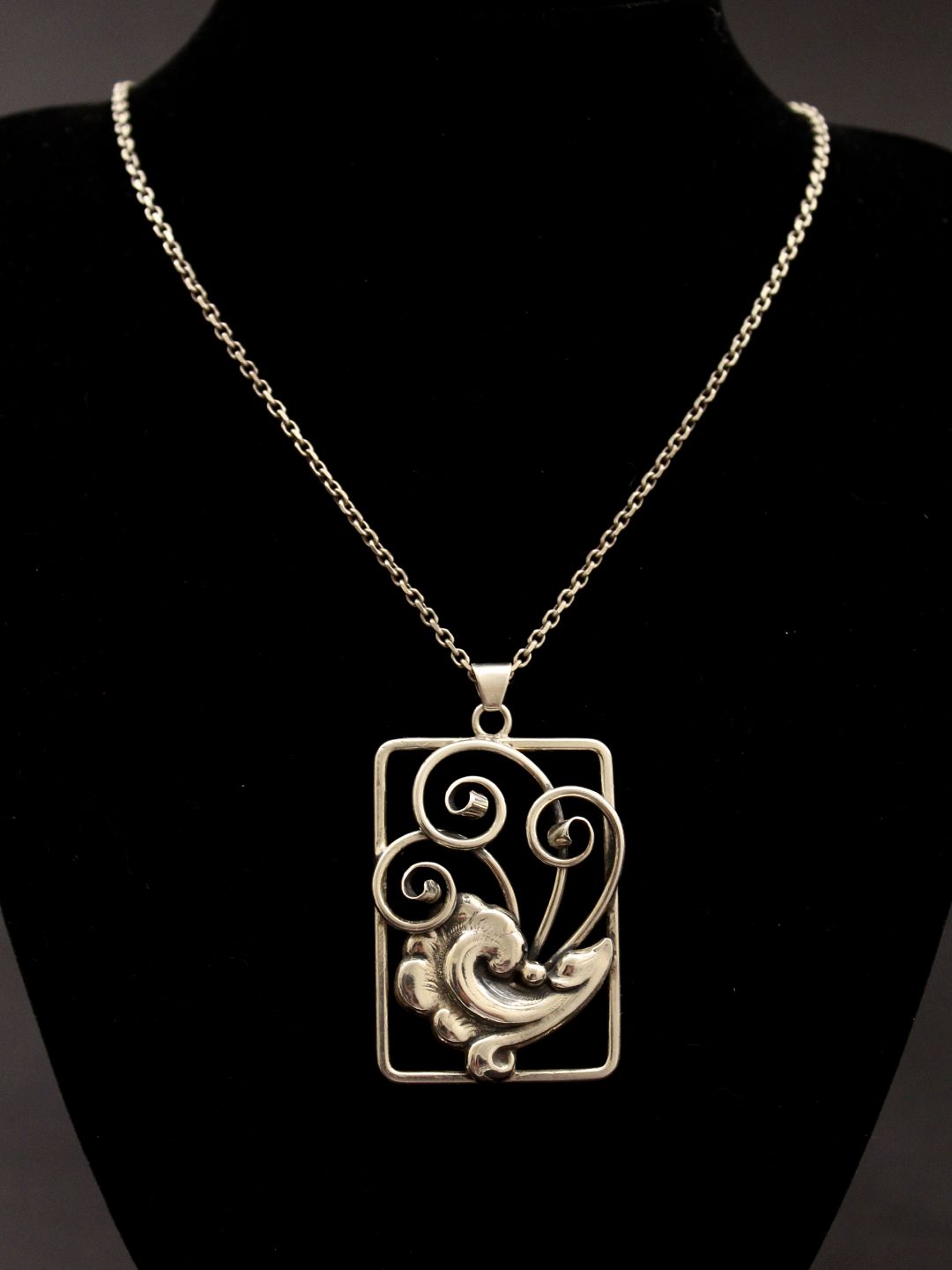 Silver chain 60 cm. with art deco pendant 3.2 x 5 cm. Danish Design from silversmith C.B.Hansen Copenhagen item no. 465289
