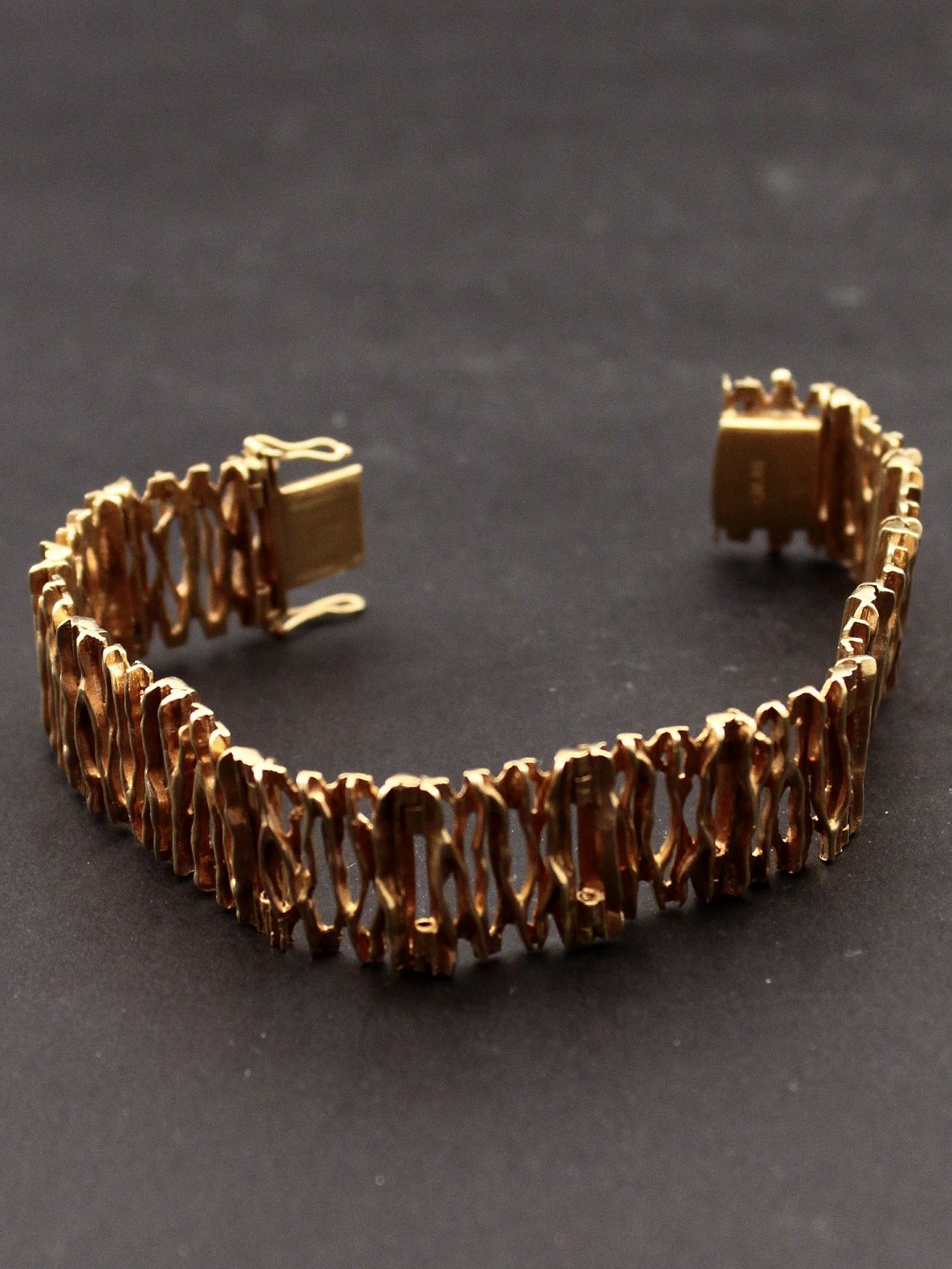 14 carat gold bracelet L. 18.5 cm. B. 1.75 cm. stamped 585 BH for jeweler Bernhard Hertz Kbh. item No. 466147