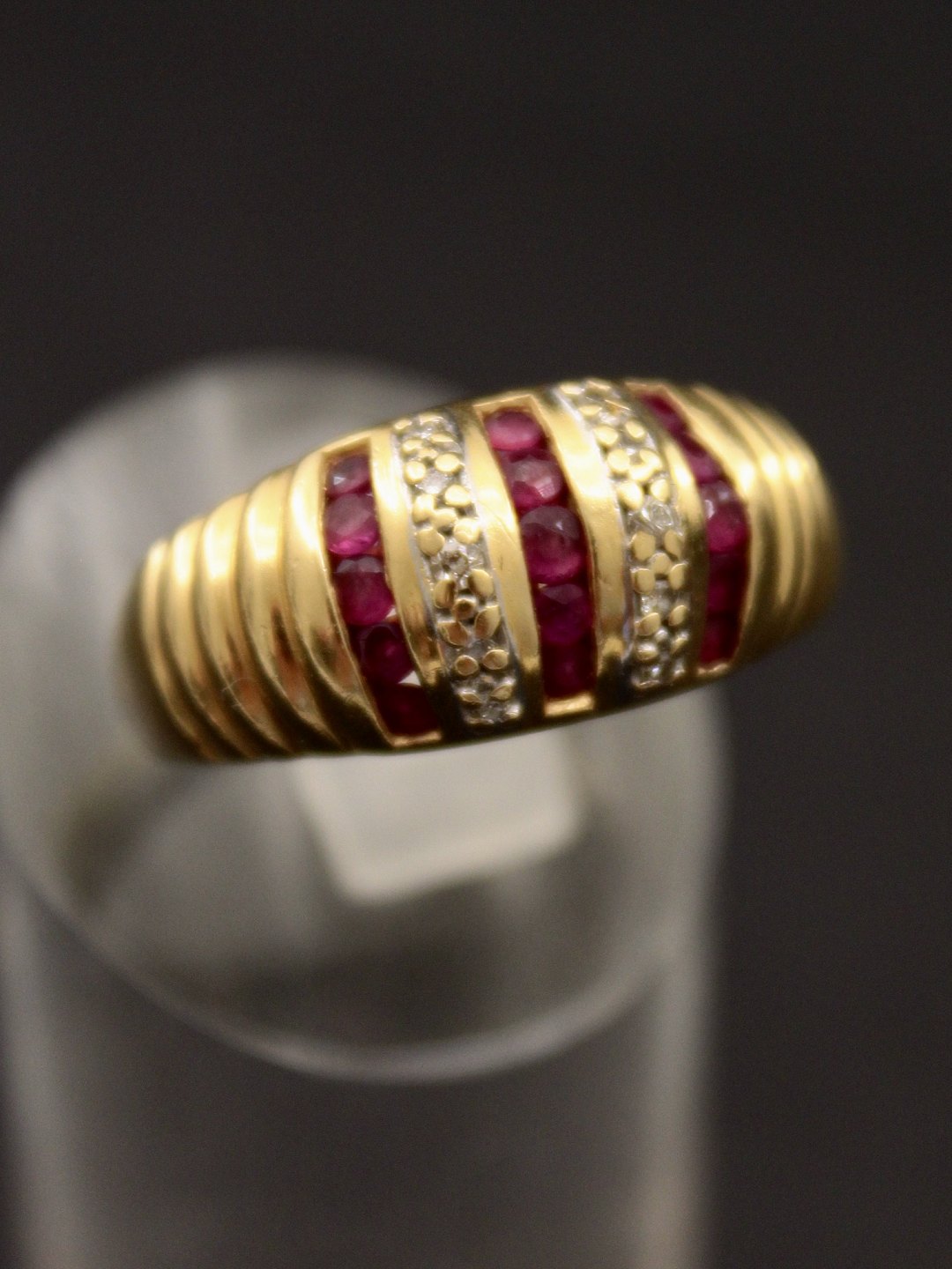 14 carat vintage gold ring size 63 with rubies and diamonds item no. 467055
