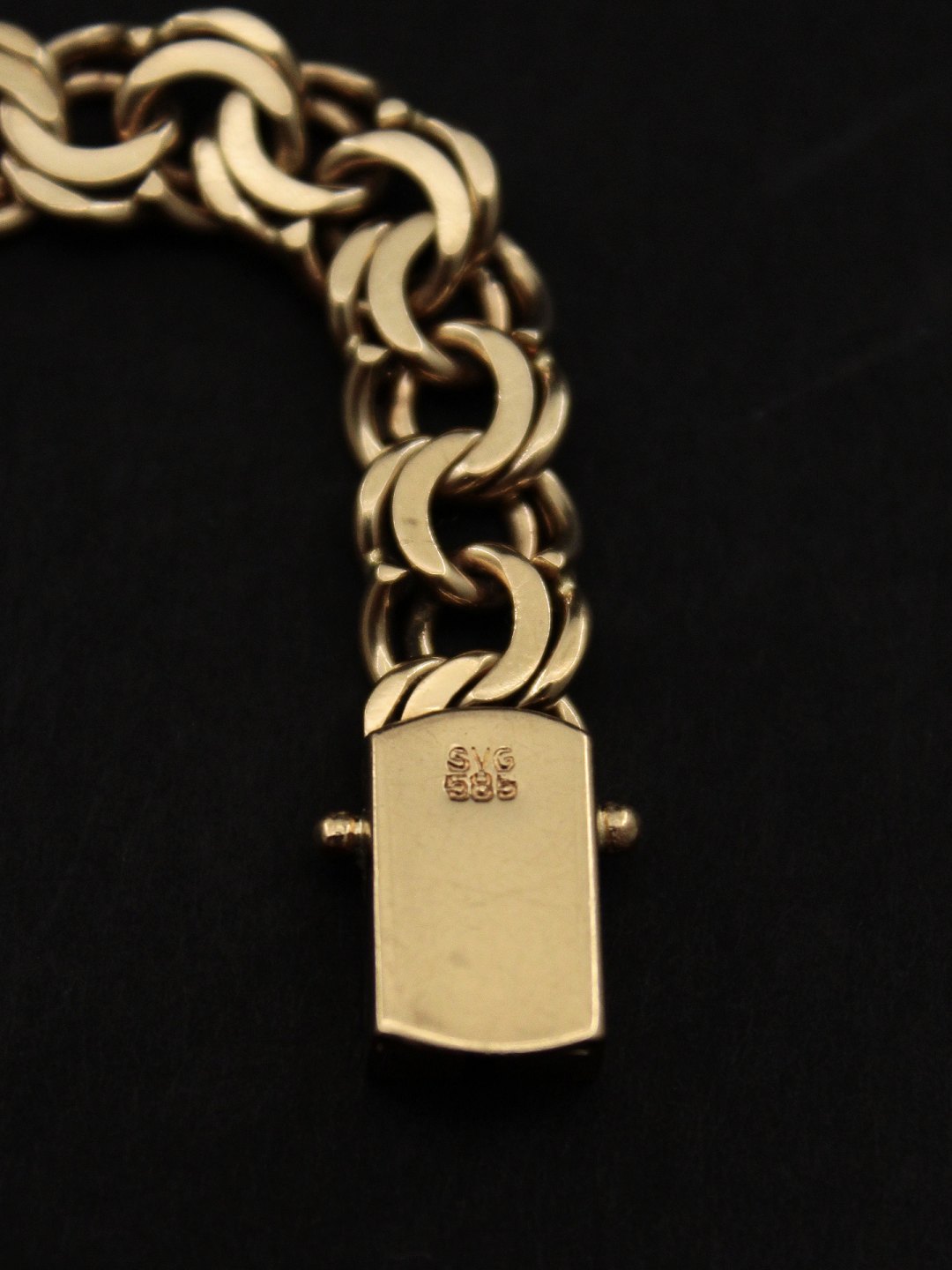 14 karat guld bismarck armlænke 19 cm. B. 0.85 cm. 22,2 gr. fra guldsmed Sv. Glymer København emne nr 467755