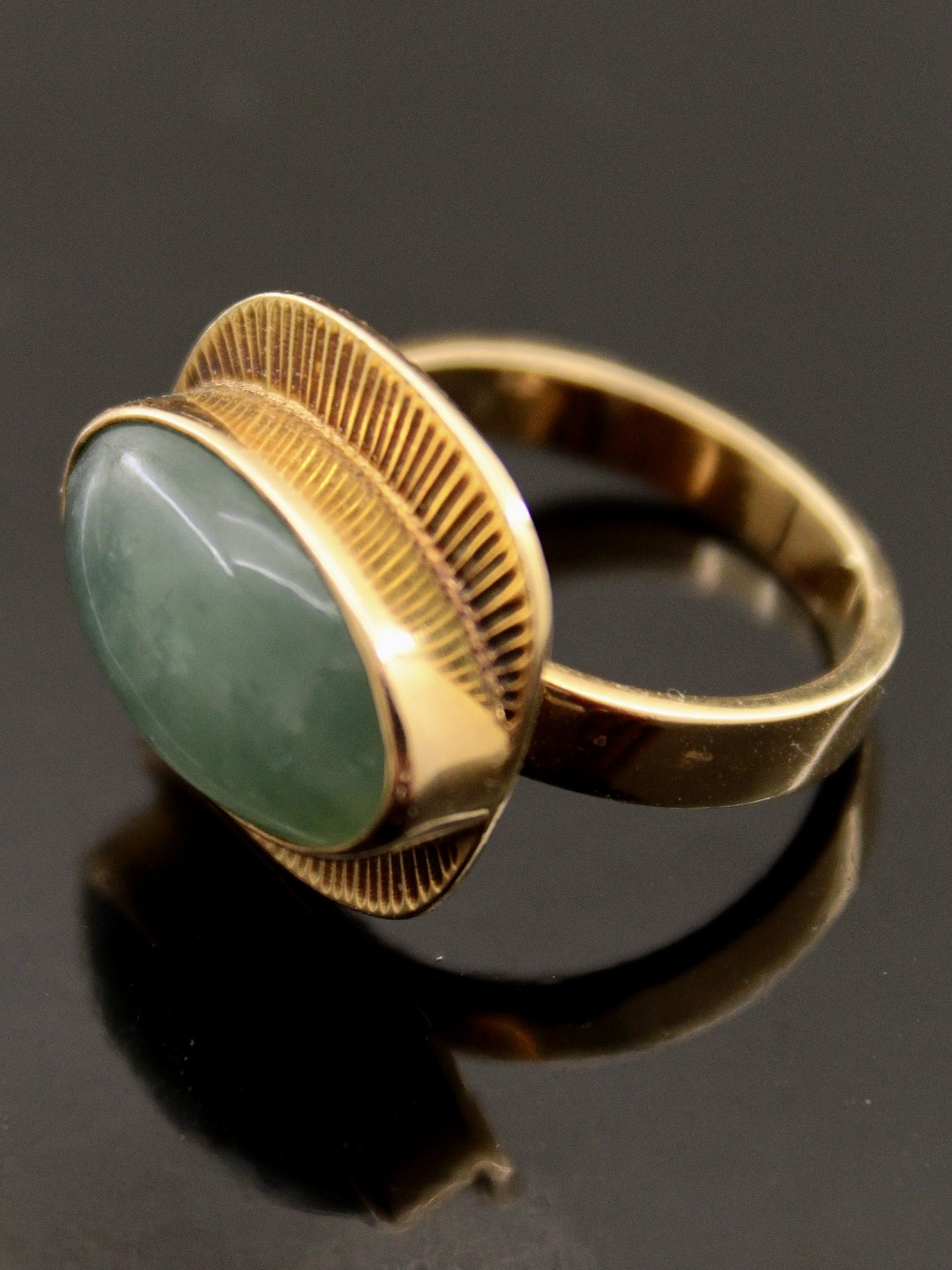 14 karat guld ring størrelse 55-56 med jade 1 x 1,8 cm. design guldsmed Jens Hougaard København emne nr 472826