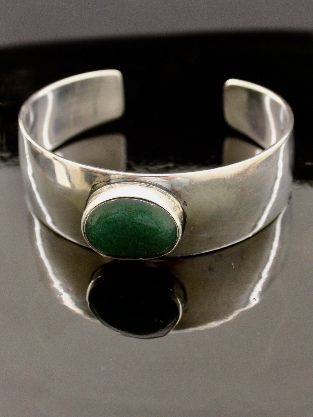 Sterling sølv armring 5,5 cm. med grøn sten emne nr. 474017